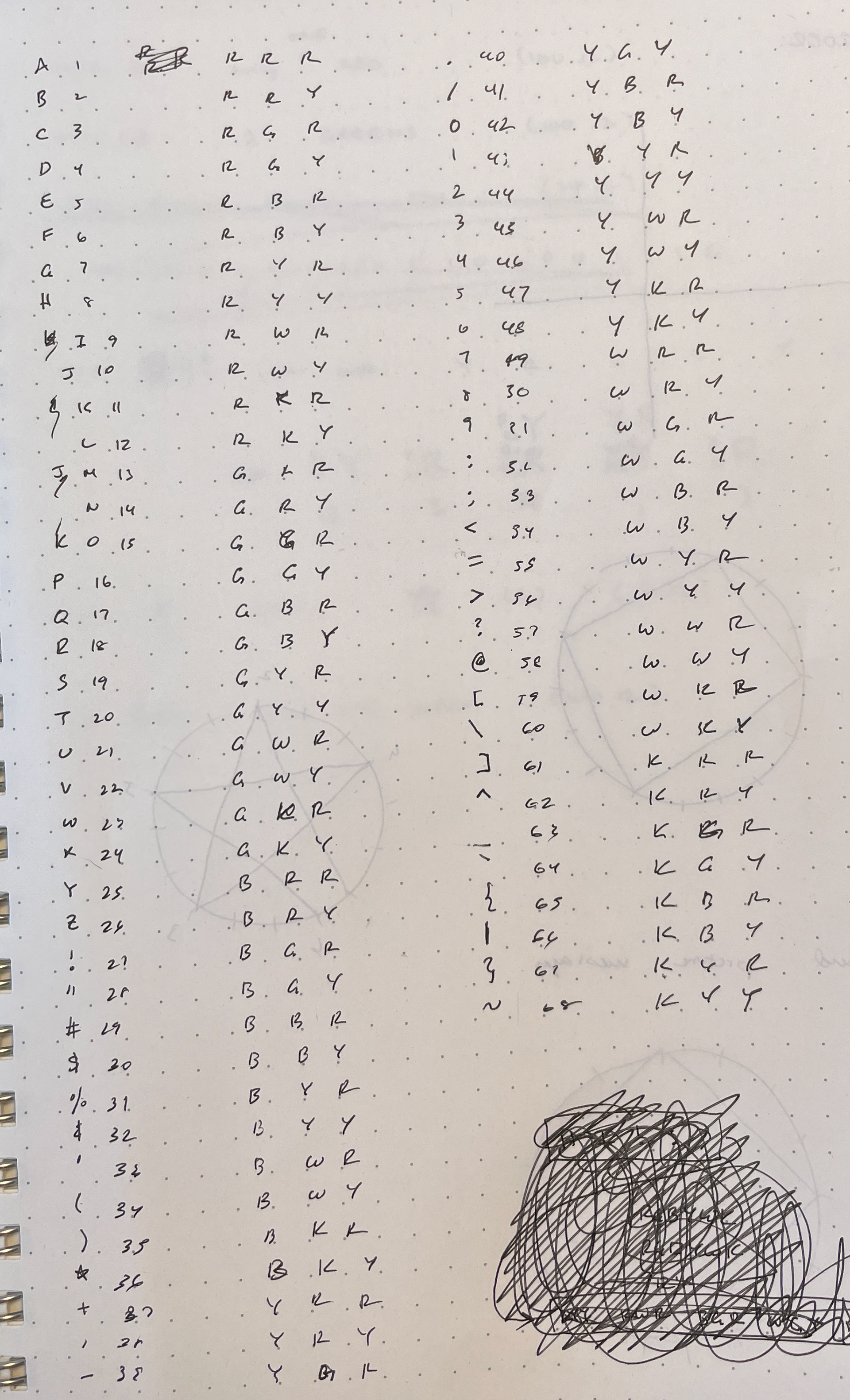 Decoding: use Color-Code, which maps jumper/LED color combinations to symbols.