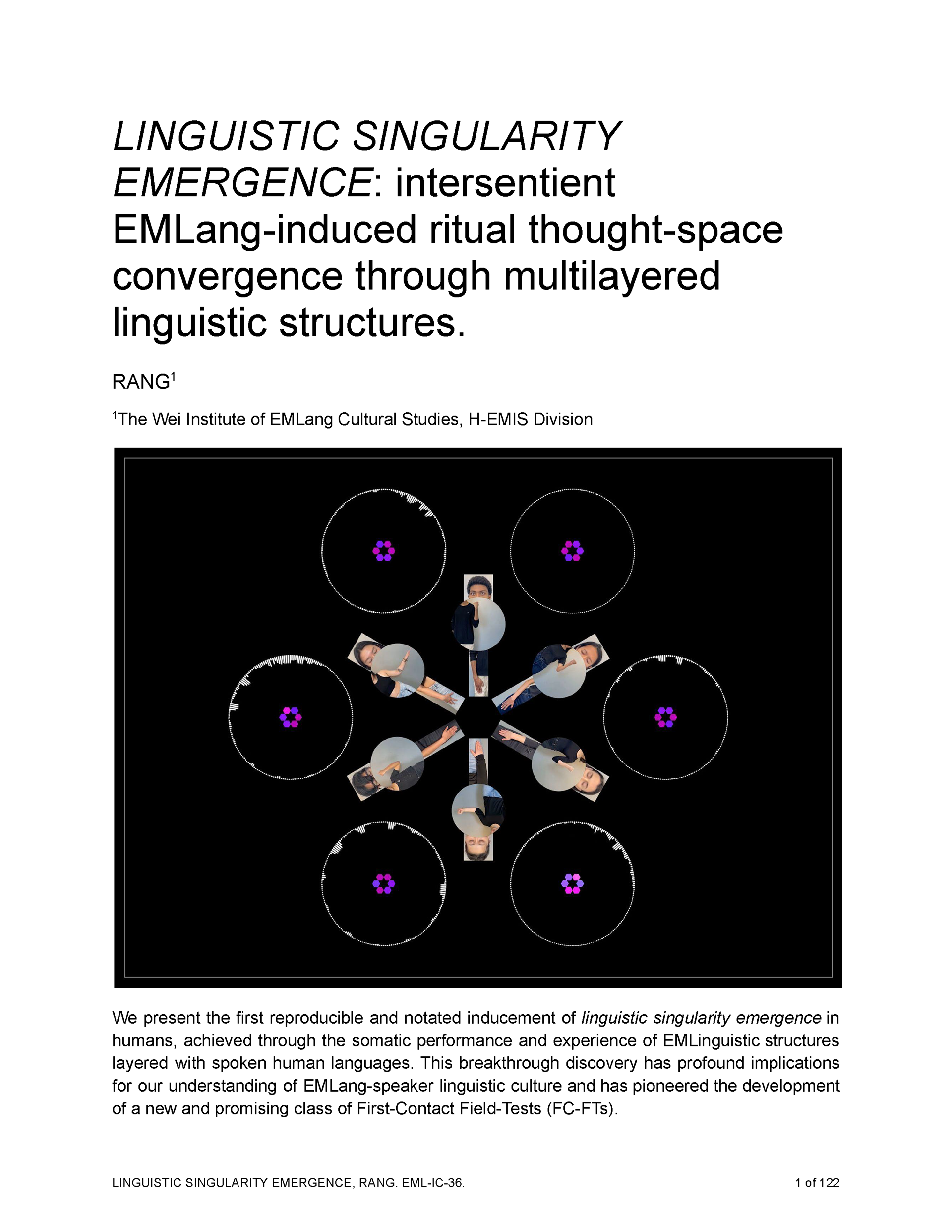 LINGUISTIC SINGULARITY EMERGENCE: intersentient EMLang-induced ritual thought-space convergence through multilayered linguistic structures.